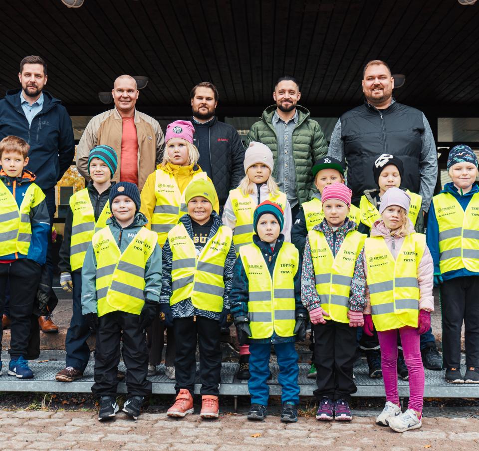 The vests were jointly given by the benefactors to Naantali City under the watchful eyes of the first graders! First impressions from the children were great and the smiles on their faces told us that part of the campaign was a success. Hopefully we will see a lot of children wearing these vests in the dark autumn days on the streets of Naantali.